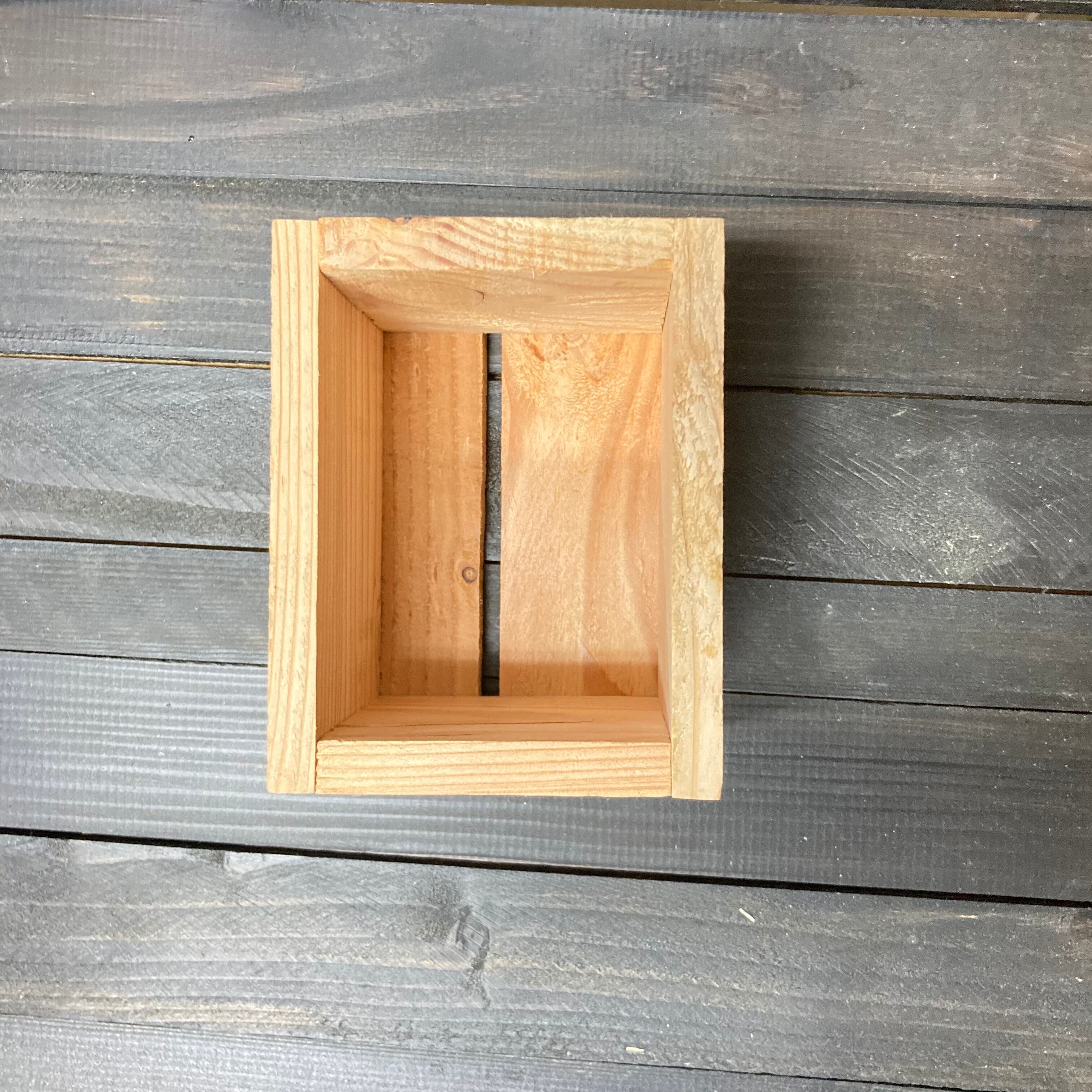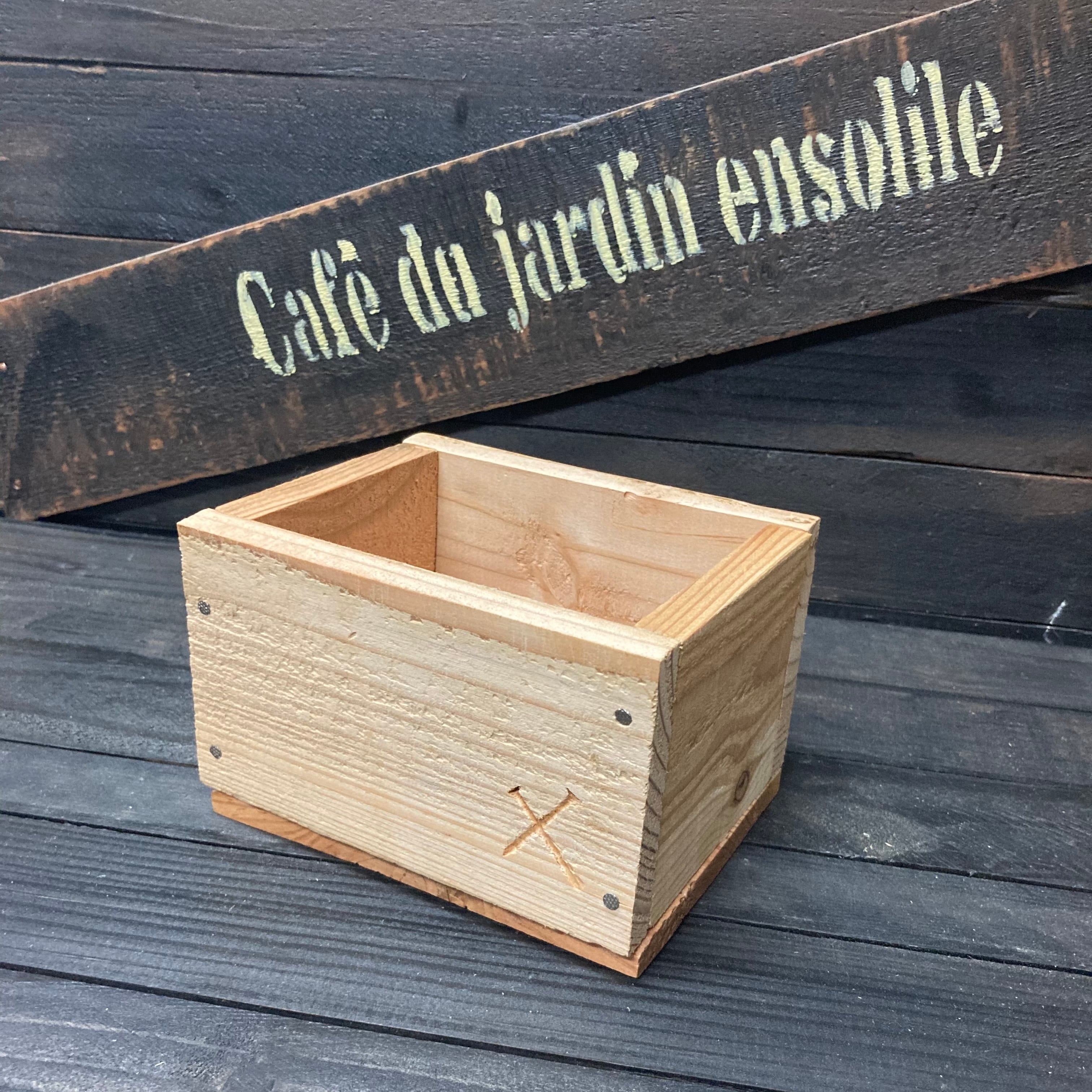 プランツBOXシリーズの一番小さいタイプ。多肉植物を植えるのにはちょうどいい大きさです。木目を活かした加工ができます。そのままでもナチュラルで素敵です。釘が付いていますので後はハンマーがあればできあがる便利なセット。プランツBOXミニとセットにできるようになっています。それぞれならではのカスタマイズでお楽しみください。
